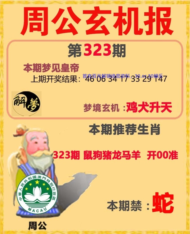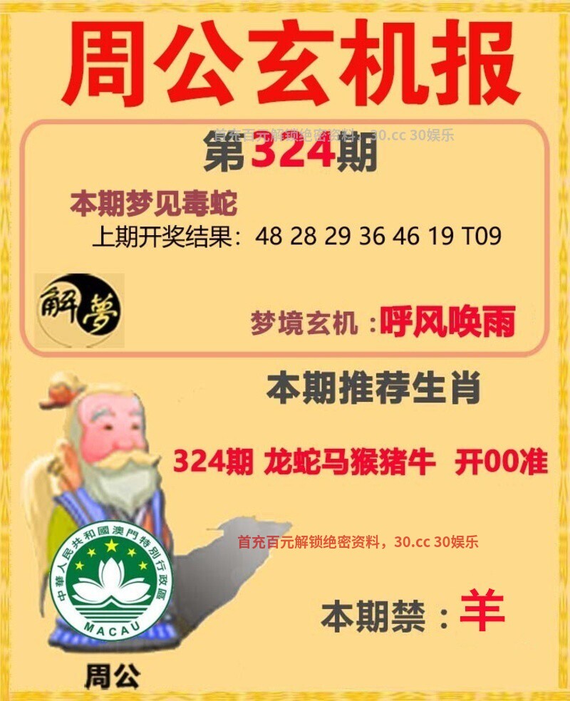 | 324期周公解梦 本期梦见:毒蛇 梦境玄机:呼风唤雨 本期推荐:龙蛇马猴猪牛 本期禁肖:羊 |